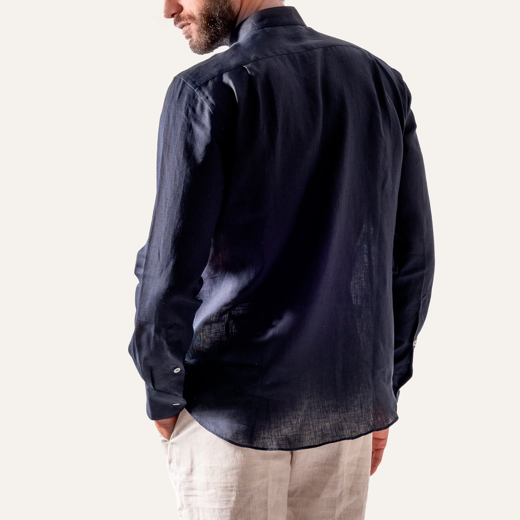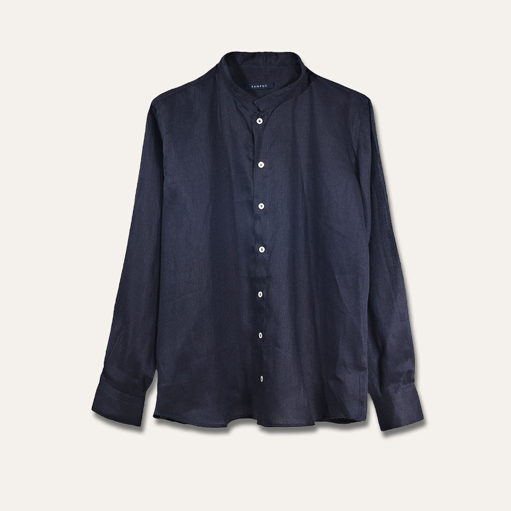 قميص كتان كاجوال باللون الأزرق الداكن